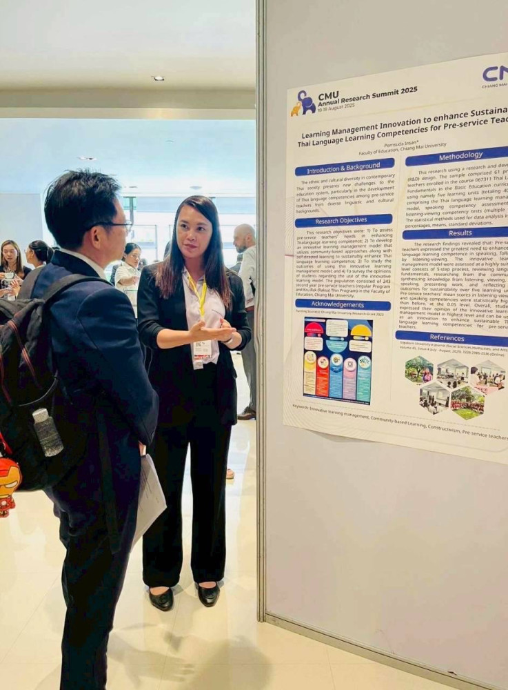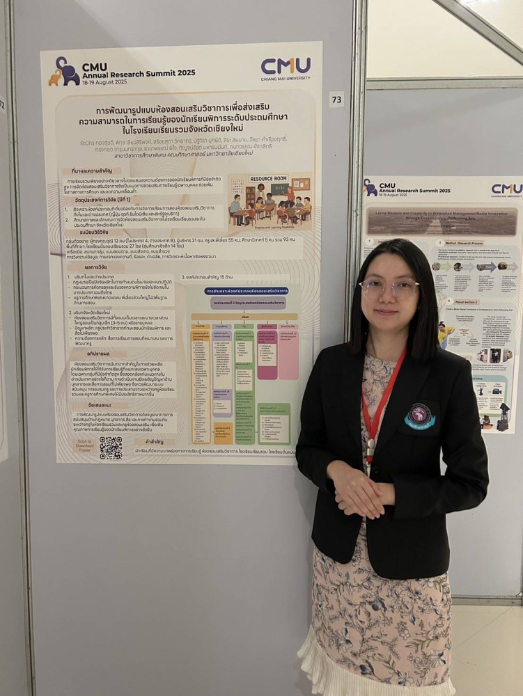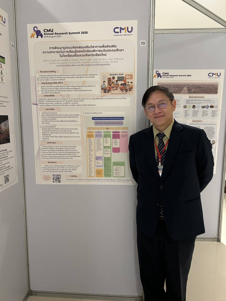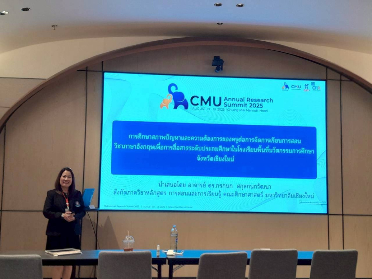 ภาควิชาหลักสูตร การสอนและการเรียนรู้ ขอแสดงความชื่นชมและยินดีกับคณาจารย์ภาควิชาทุกๆท่าน ที่ได้เข้าร่วมและส่งบทความผลงานวิจัยจากโครงการที่ได้รับการสนับสนุน เพื่อนำเสนอในงานประชุมวิชาการ CMU Annual Research Summit ประจำปี 2568 ทั้งในรูปแบบการบรรยายปากเปล่า (Oral Presentation) และโปสเตอร์ (Poster Presentation) เมื่อวันที่ 18 - 19 สิงหาคม 2568 ณ โรงแรมเชียงใหม่ แมริออท โฮเทล จังหวัดเชียงใหม่